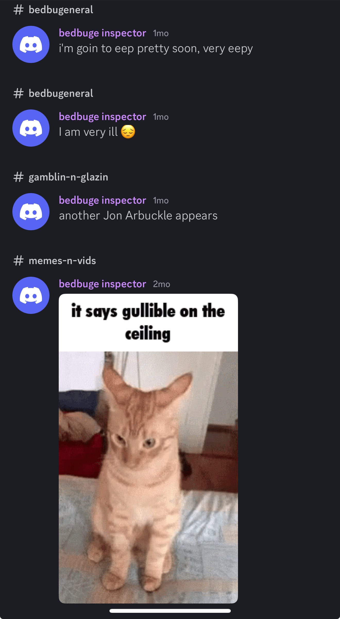 Screenshot of another Discord chat where Robinson went by the username “Bedbuge Inspector”